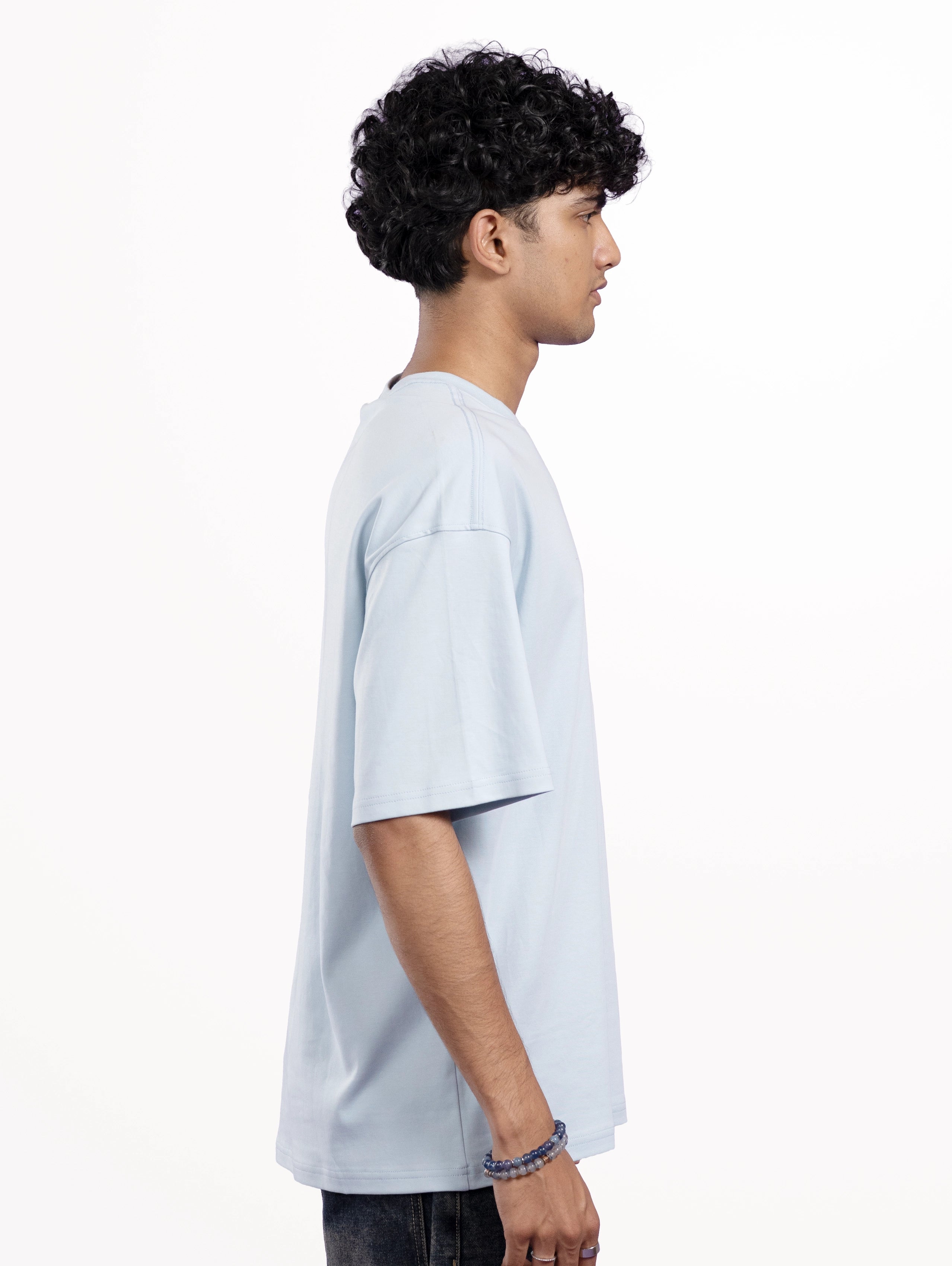 Custom Cozy Knit Oversized Round Neck Half Sleeve T-Shirt - Sky Blue