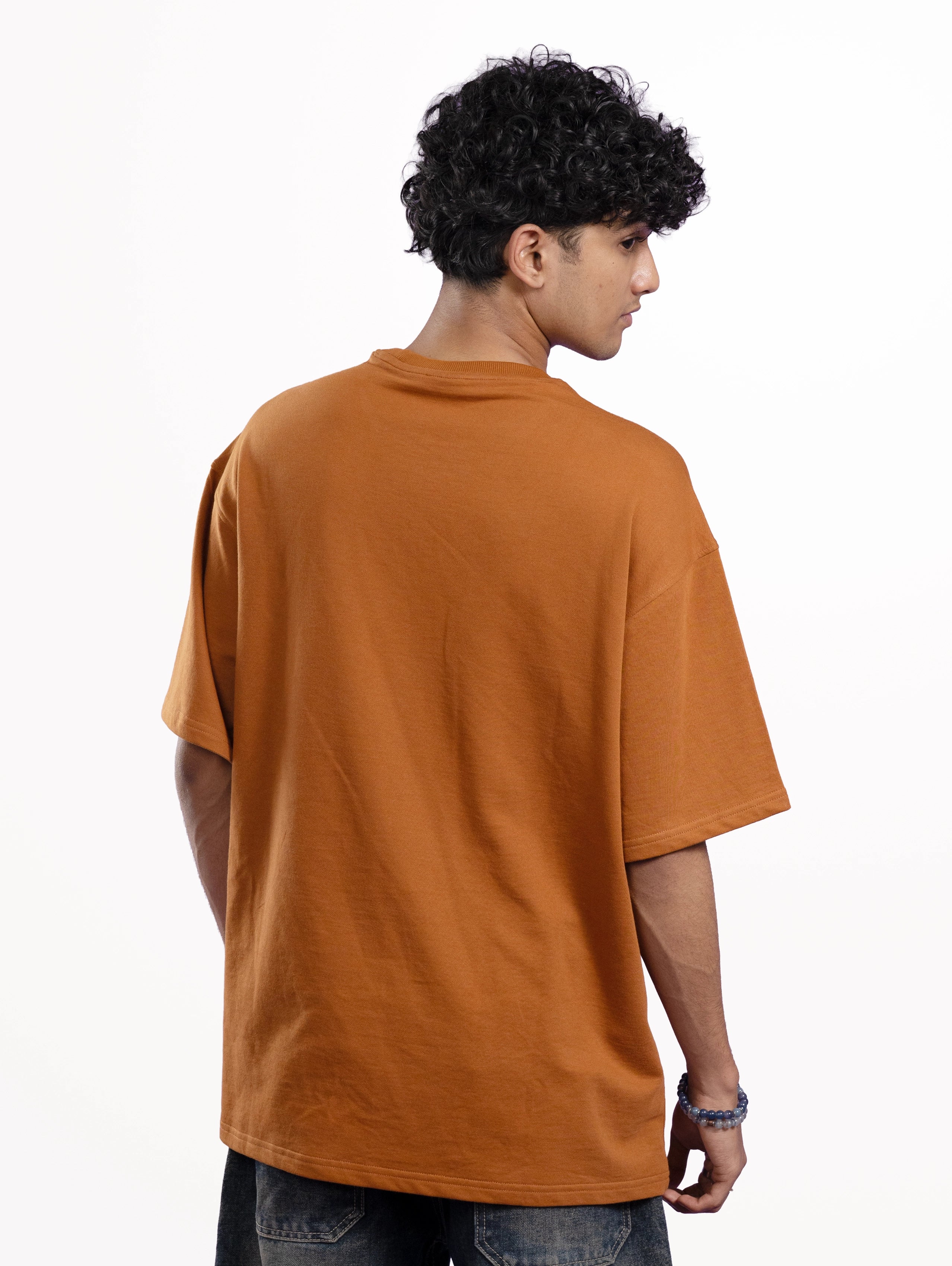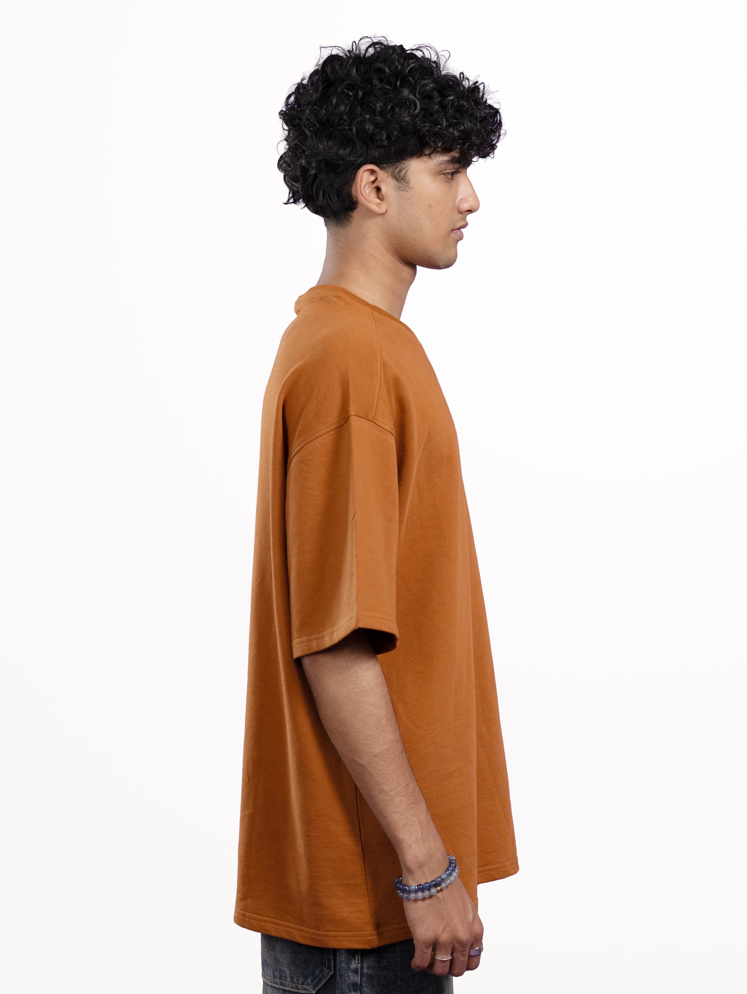 Custom Men’s Cozy Knit Oversized Round Neck Half Sleeve T-Shirt - Brown