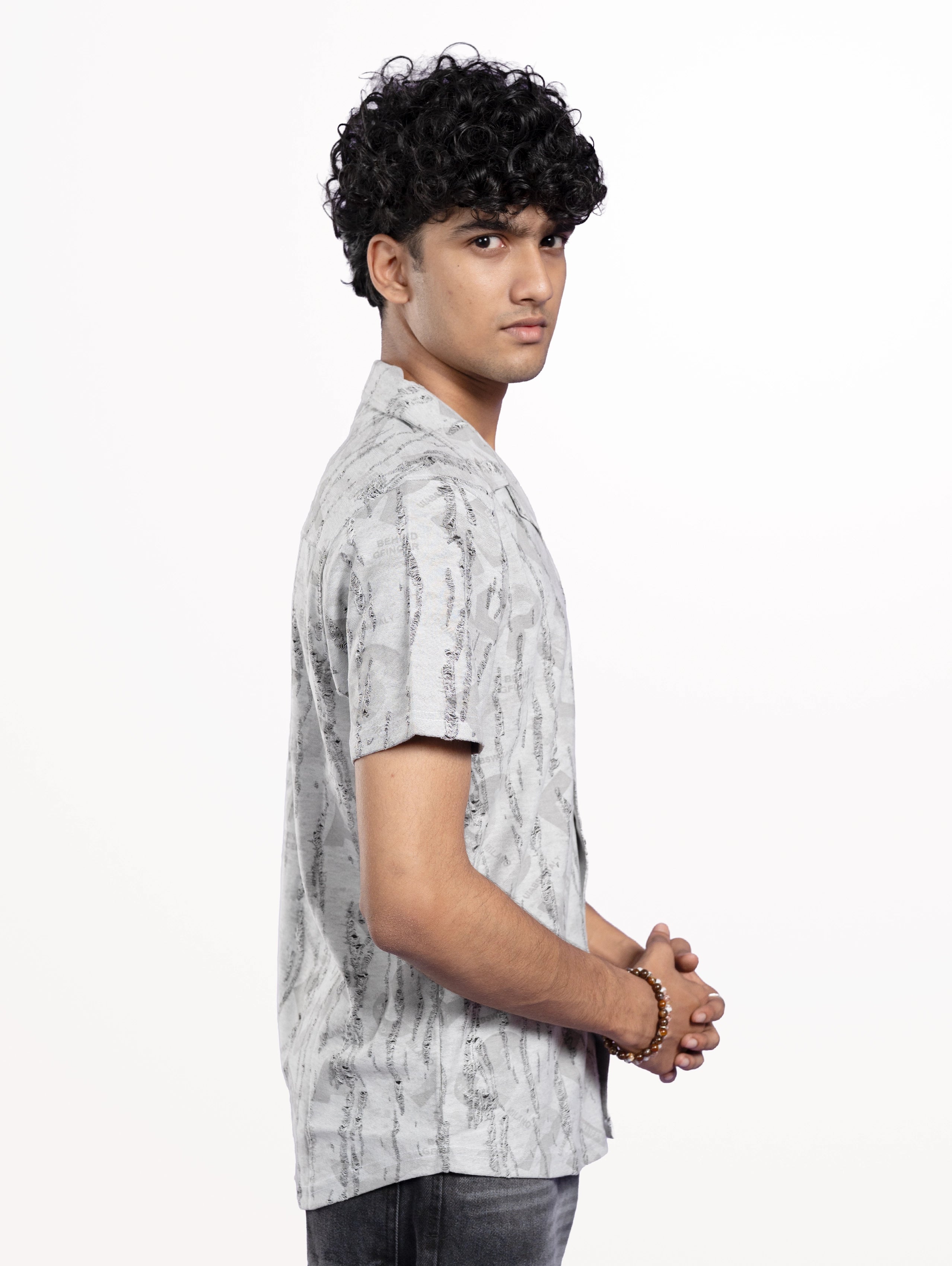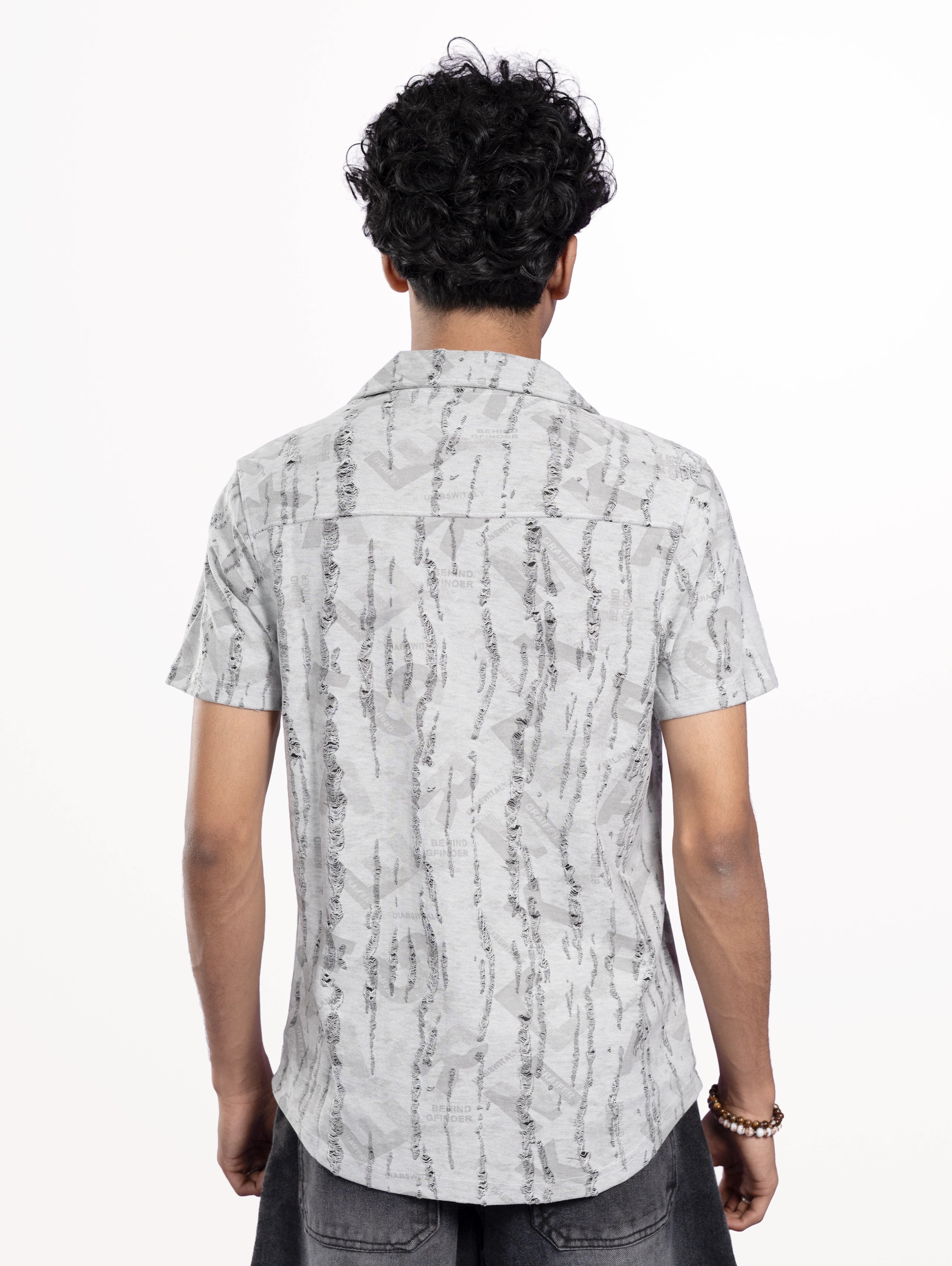 Choose the Men's Rugs Printed Cuban Collar Shirt in Grey for versatile styling and standout patterned appeal.