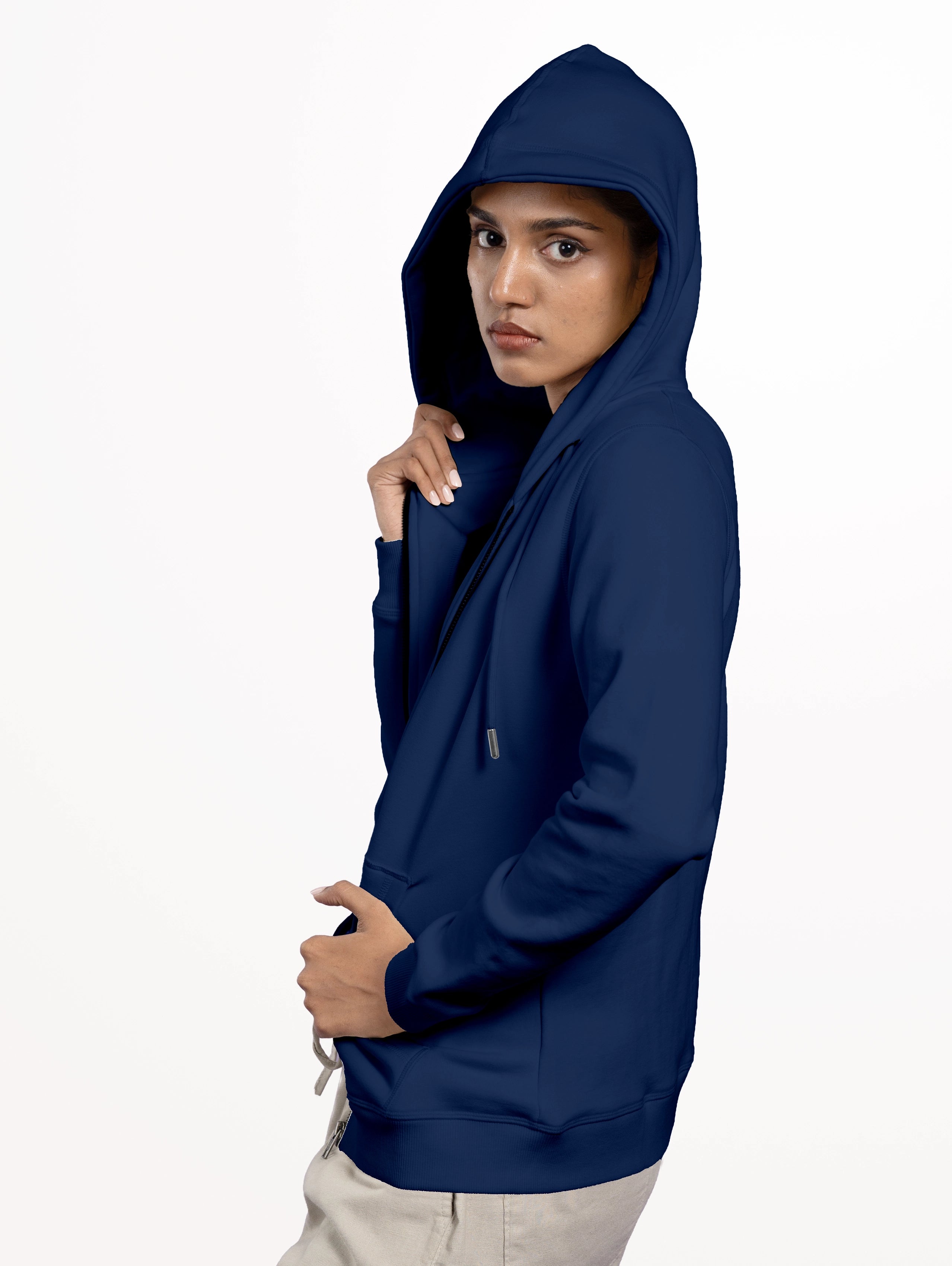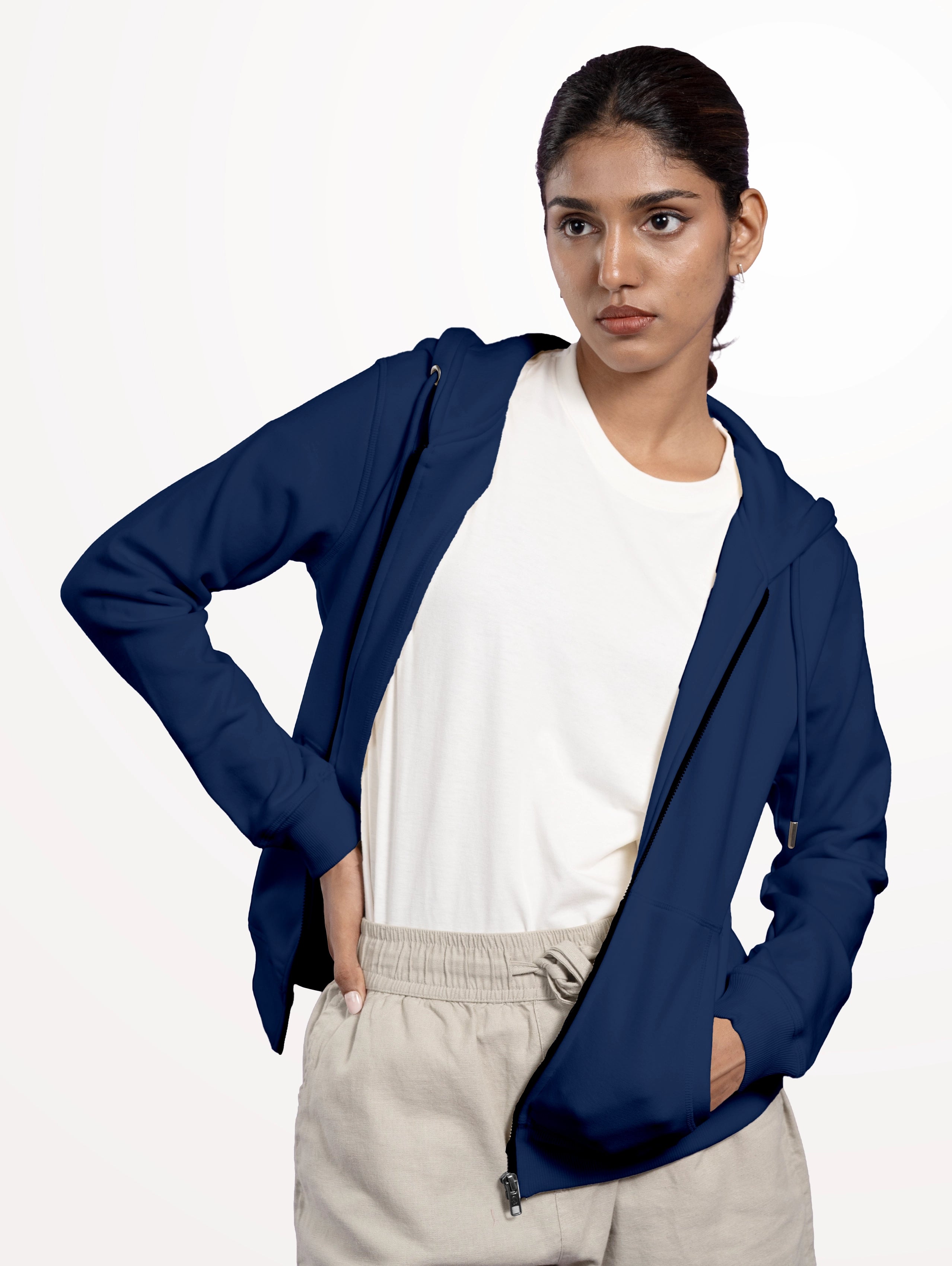 Women's Blend Zipper Hoodie - Navy Blue